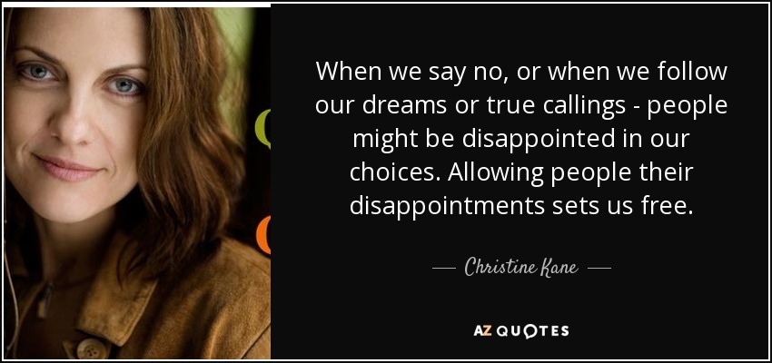 When we say no, or when we follow our dreams or true callings - people might be disappointed in our choices. Allowing people their disappointments sets us free.