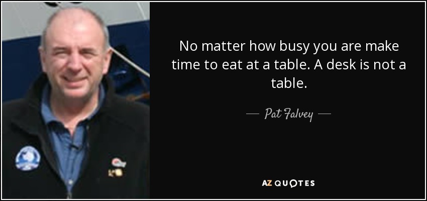 No matter how busy you are make time to eat at a table. A desk is not a table.
