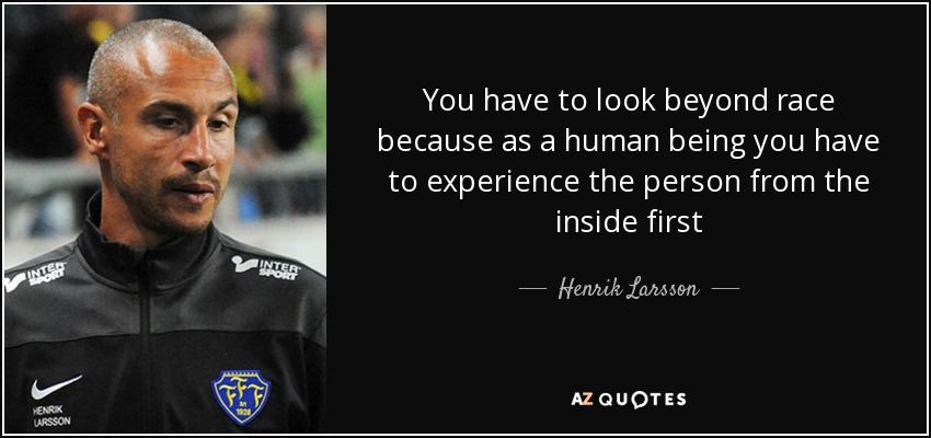 You have to look beyond race because as a human being you have to experience the person from the inside first