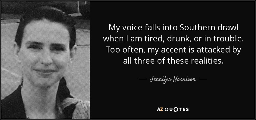 My voice falls into Southern drawl when I am tired, drunk, or in trouble. Too often, my accent is attacked by all three of these realities.