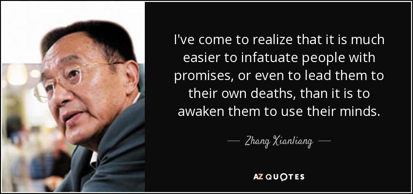 I've come to realize that it is much easier to infatuate people with promises, or even to lead them to their own deaths, than it is to awaken them to use their minds.