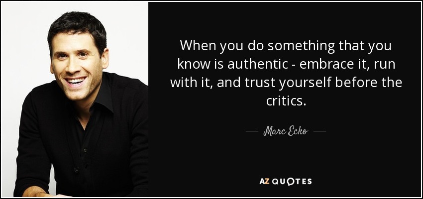 When you do something that you know is authentic - embrace it, run with it, and trust yourself before the critics.