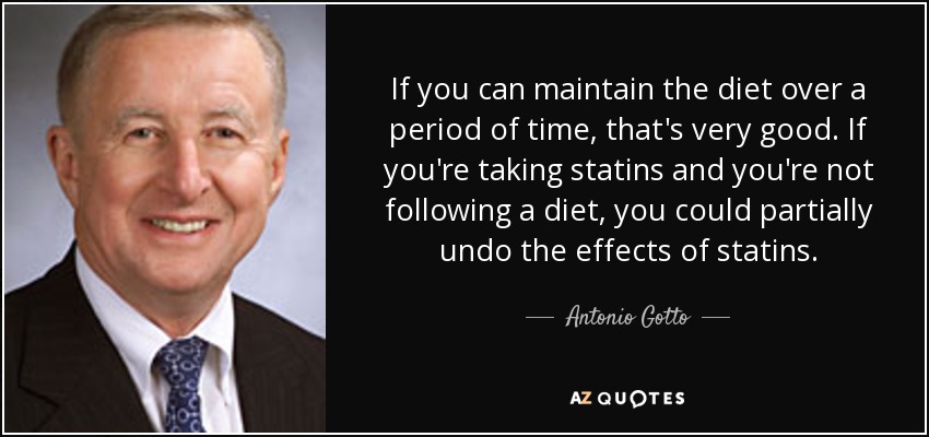 If you can maintain the diet over a period of time, that's very good. If you're taking statins and you're not following a diet, you could partially undo the effects of statins.
