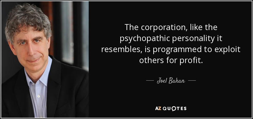 The corporation, like the psychopathic personality it resembles, is programmed to exploit others for profit.