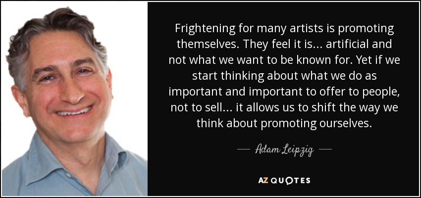 Frightening for many artists is promoting themselves. They feel it is... artificial and not what we want to be known for. Yet if we start thinking about what we do as important and important to offer to people, not to sell... it allows us to shift the way we think about promoting ourselves.