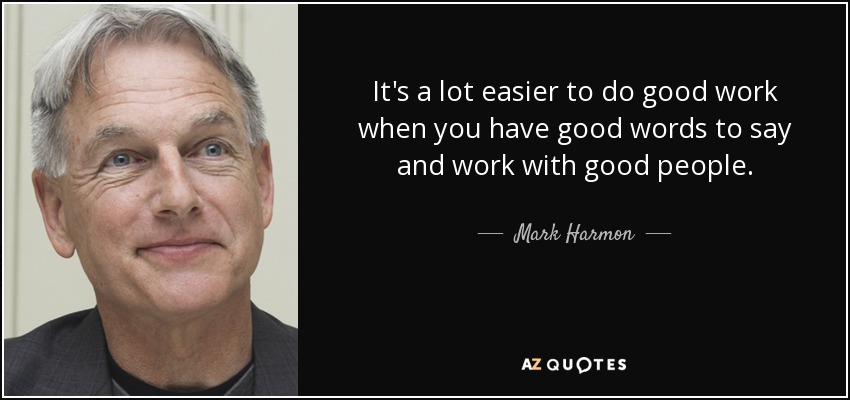 It's a lot easier to do good work when you have good words to say and work with good people.