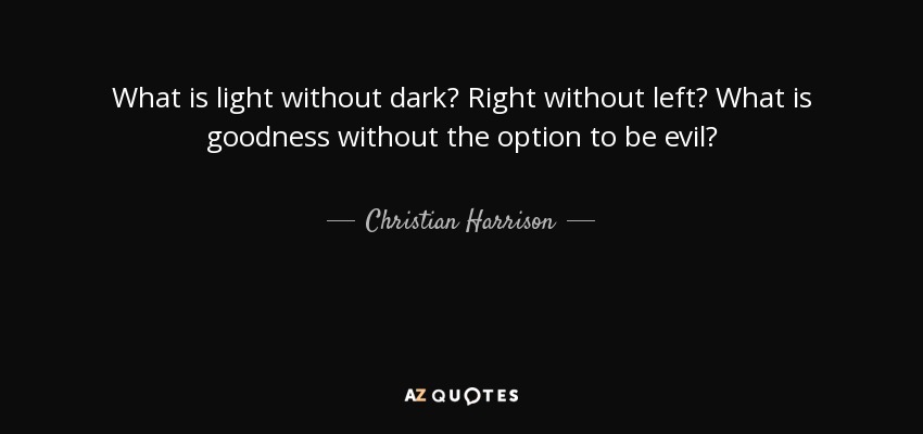 What is light without dark? Right without left? What is goodness without the option to be evil?
