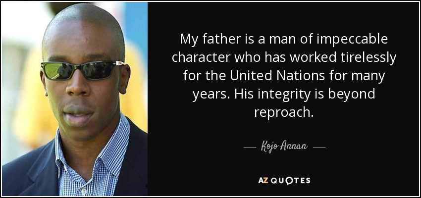 My father is a man of impeccable character who has worked tirelessly for the United Nations for many years. His integrity is beyond reproach.