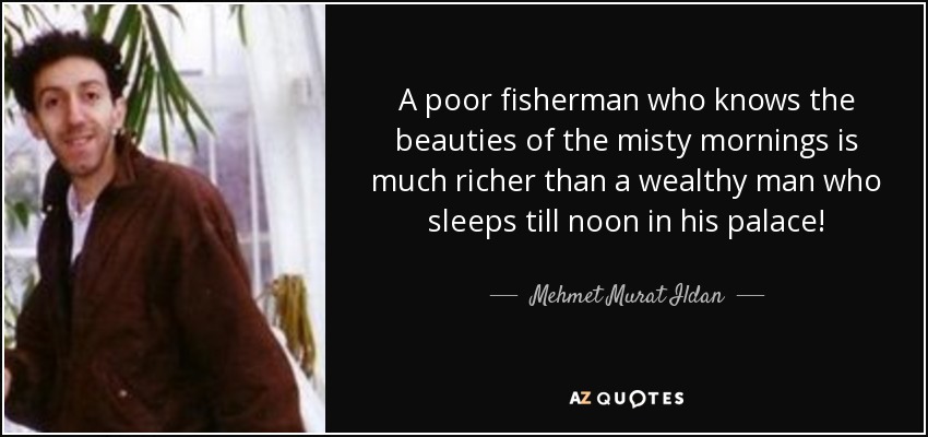A poor fisherman who knows the beauties of the misty mornings is much richer than a wealthy man who sleeps till noon in his palace!