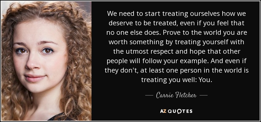 We need to start treating ourselves how we deserve to be treated, even if you feel that no one else does. Prove to the world you are worth something by treating yourself with the utmost respect and hope that other people will follow your example. And even if they don't, at least one person in the world is treating you well: You.