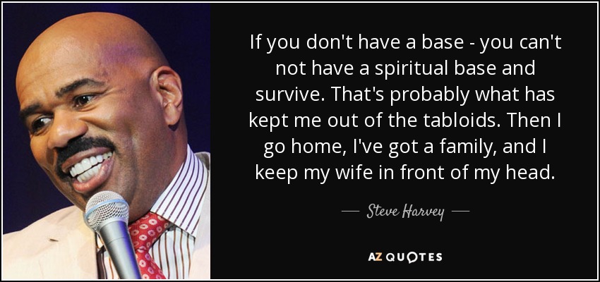 If you don't have a base - you can't not have a spiritual base and survive. That's probably what has kept me out of the tabloids. Then I go home, I've got a family, and I keep my wife in front of my head.