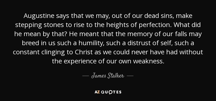Augustine says that we may, out of our dead sins, make stepping stones to rise to the heights of perfection. What did he mean by that? He meant that the memory of our falls may breed in us such a humility, such a distrust of self, such a constant clinging to Christ as we could never have had without the experience of our own weakness.
