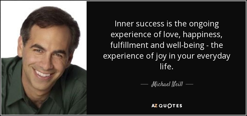 Inner success is the ongoing experience of love, happiness, fulfillment and well-being - the experience of joy in your everyday life.
