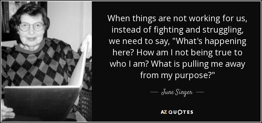 When things are not working for us, instead of fighting and struggling, we need to say, "What's happening here? How am I not being true to who I am? What is pulling me away from my purpose?"