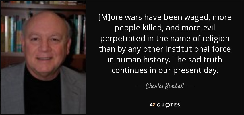 [M]ore wars have been waged, more people killed, and more evil perpetrated in the name of religion than by any other institutional force in human history. The sad truth continues in our present day.
