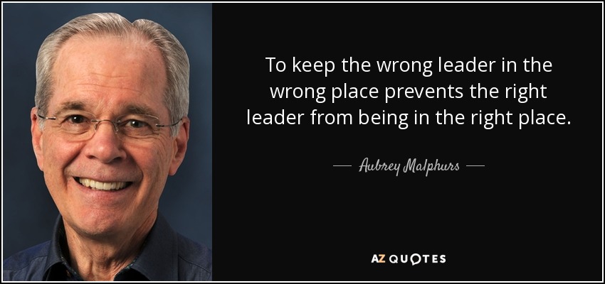 To keep the wrong leader in the wrong place prevents the right leader from being in the right place.