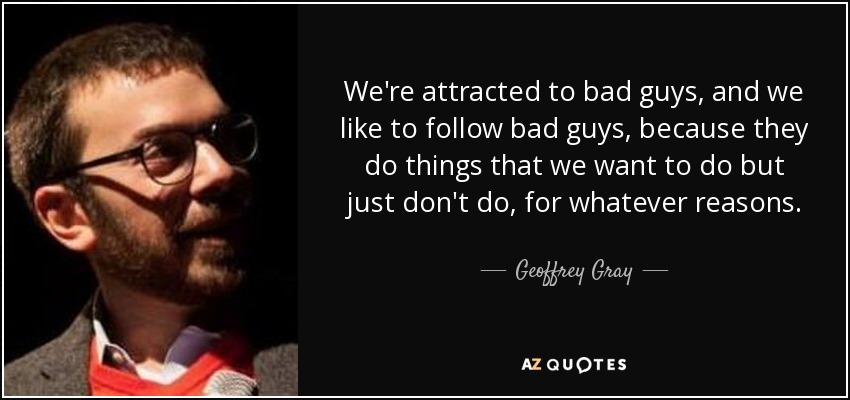 We're attracted to bad guys, and we like to follow bad guys, because they do things that we want to do but just don't do, for whatever reasons.