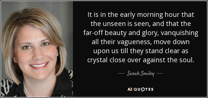 It is in the early morning hour that the unseen is seen, and that the far-off beauty and glory, vanquishing all their vagueness, move down upon us till they stand clear as crystal close over against the soul.