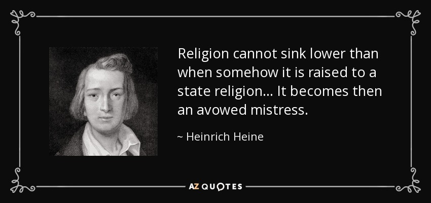 Religion cannot sink lower than when somehow it is raised to a state religion ... It becomes then an avowed mistress.