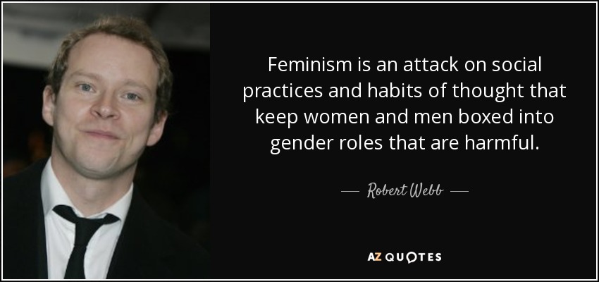 Feminism is an attack on social practices and habits of thought that keep women and men boxed into gender roles that are harmful.