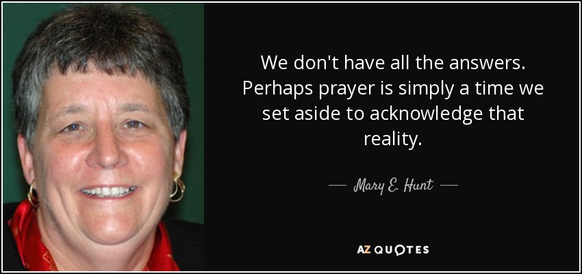 We don't have all the answers. Perhaps prayer is simply a time we set aside to acknowledge that reality.