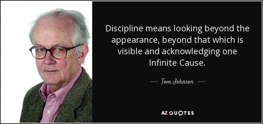 Discipline means looking beyond the appearance, beyond that which is visible and acknowledging one Infinite Cause.