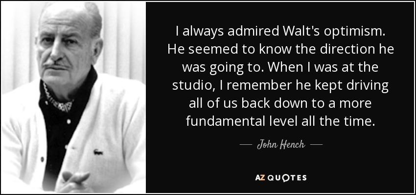 I always admired Walt's optimism. He seemed to know the direction he was going to. When I was at the studio, I remember he kept driving all of us back down to a more fundamental level all the time.