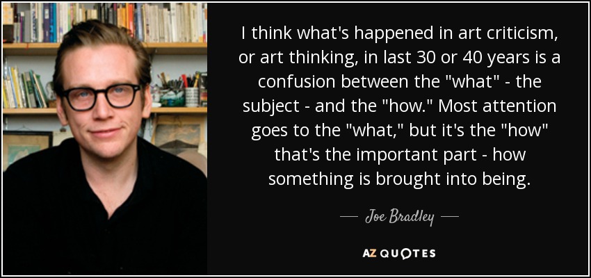 I think what's happened in art criticism, or art thinking, in last 30 or 40 years is a confusion between the "what" - the subject - and the "how." Most attention goes to the "what," but it's the "how" that's the important part - how something is brought into being.