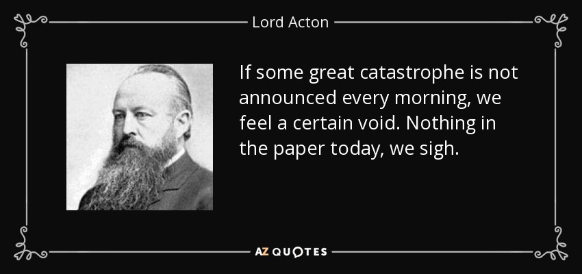 If some great catastrophe is not announced every morning, we feel a certain void. Nothing in the paper today, we sigh.