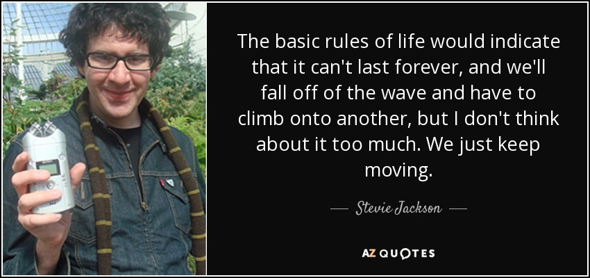 The basic rules of life would indicate that it can't last forever, and we'll fall off of the wave and have to climb onto another, but I don't think about it too much. We just keep moving.