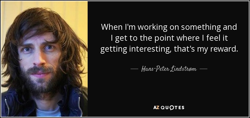 When I'm working on something and I get to the point where I feel it getting interesting, that's my reward.