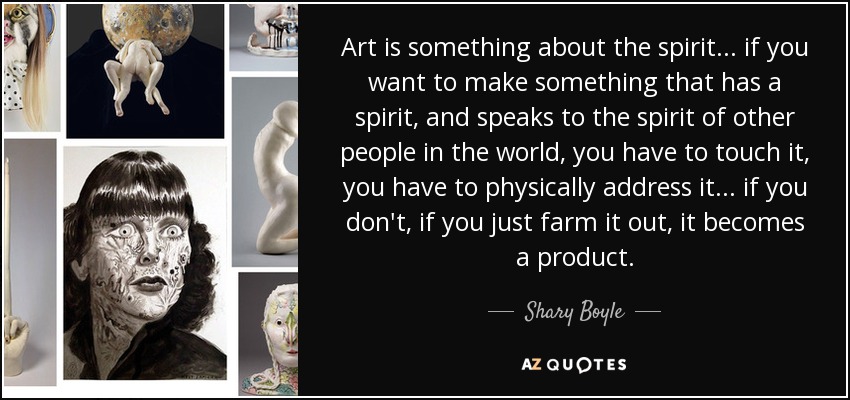 Art is something about the spirit... if you want to make something that has a spirit, and speaks to the spirit of other people in the world, you have to touch it, you have to physically address it... if you don't, if you just farm it out, it becomes a product.