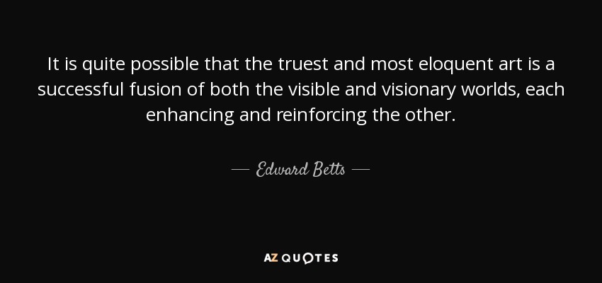 It is quite possible that the truest and most eloquent art is a successful fusion of both the visible and visionary worlds, each enhancing and reinforcing the other.