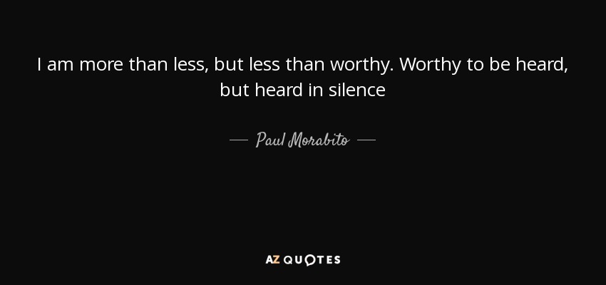 I am more than less, but less than worthy. Worthy to be heard, but heard in silence