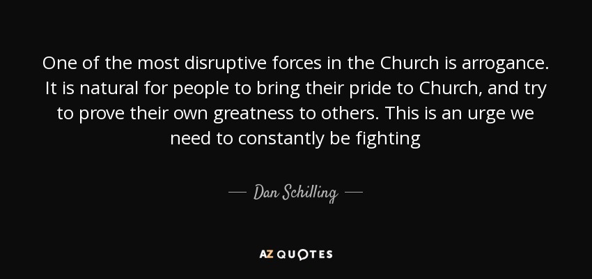 One of the most disruptive forces in the Church is arrogance. It is natural for people to bring their pride to Church, and try to prove their own greatness to others. This is an urge we need to constantly be fighting