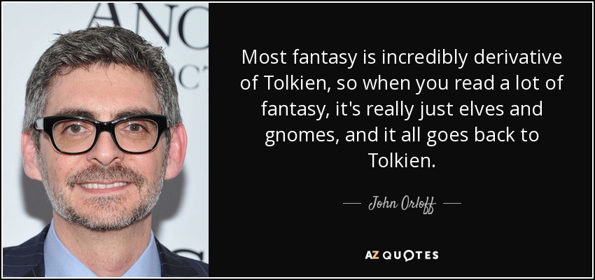 Most fantasy is incredibly derivative of Tolkien, so when you read a lot of fantasy, it's really just elves and gnomes, and it all goes back to Tolkien.