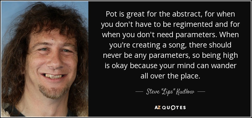 Pot is great for the abstract, for when you don't have to be regimented and for when you don't need parameters. When you're creating a song, there should never be any parameters, so being high is okay because your mind can wander all over the place.