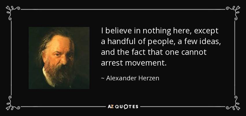 I believe in nothing here, except a handful of people, a few ideas, and the fact that one cannot arrest movement.