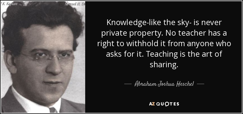 Knowledge-like the sky- is never private property. No teacher has a right to withhold it from anyone who asks for it. Teaching is the art of sharing.
