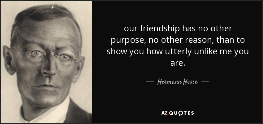our friendship has no other purpose, no other reason, than to show you how utterly unlike me you are.