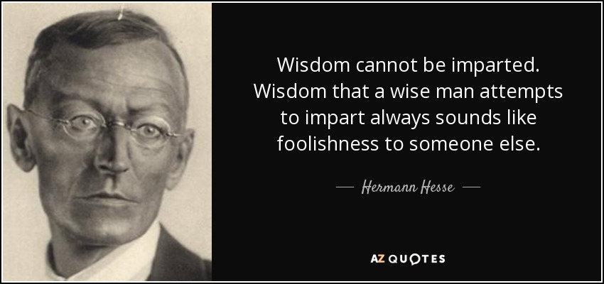 Wisdom cannot be imparted. Wisdom that a wise man attempts to impart always sounds like foolishness to someone else.