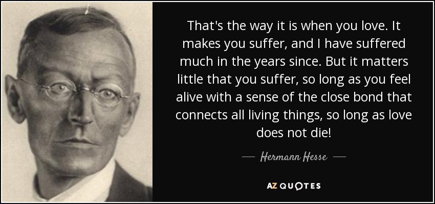 That's the way it is when you love. It makes you suffer, and I have suffered much in the years since. But it matters little that you suffer, so long as you feel alive with a sense of the close bond that connects all living things, so long as love does not die!