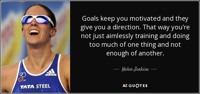Goals keep you motivated and they give you a direction. That way you're not just aimlessly training and doing too much of one thing and not enough of another.