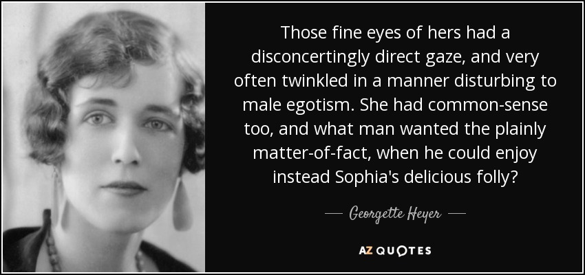 Those fine eyes of hers had a disconcertingly direct gaze, and very often twinkled in a manner disturbing to male egotism. She had common-sense too, and what man wanted the plainly matter-of-fact, when he could enjoy instead Sophia's delicious folly?