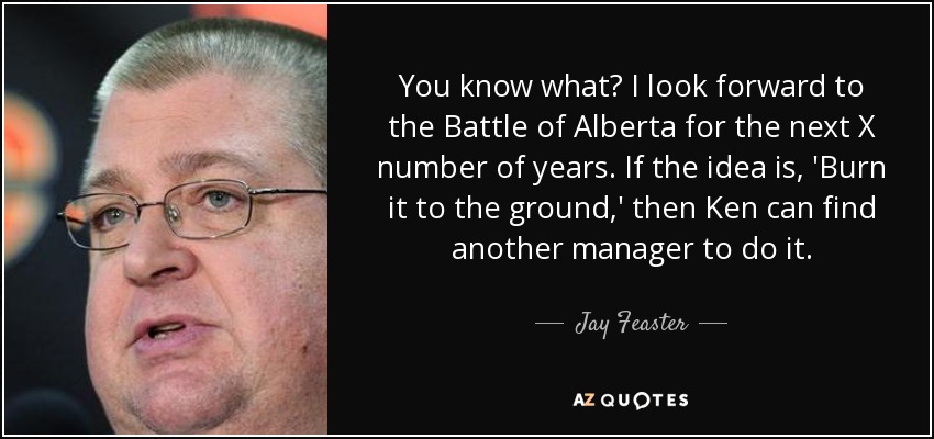You know what? I look forward to the Battle of Alberta for the next X number of years. If the idea is, 'Burn it to the ground,' then Ken can find another manager to do it.