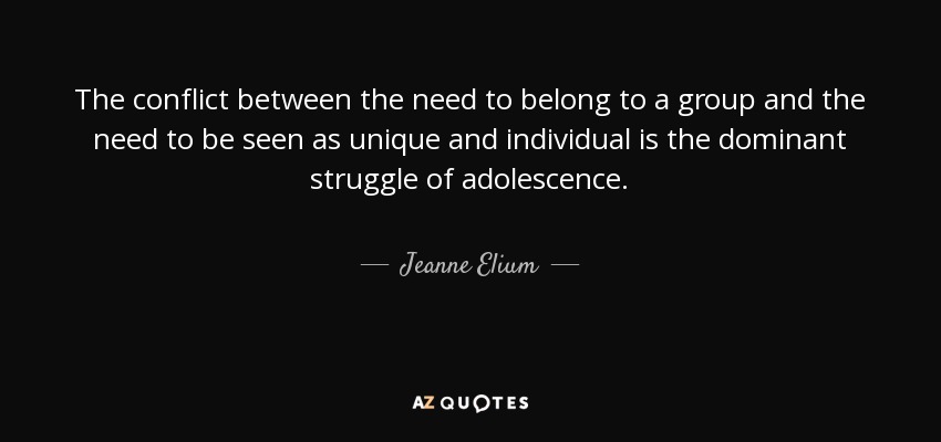 The conflict between the need to belong to a group and the need to be seen as unique and individual is the dominant struggle of adolescence.