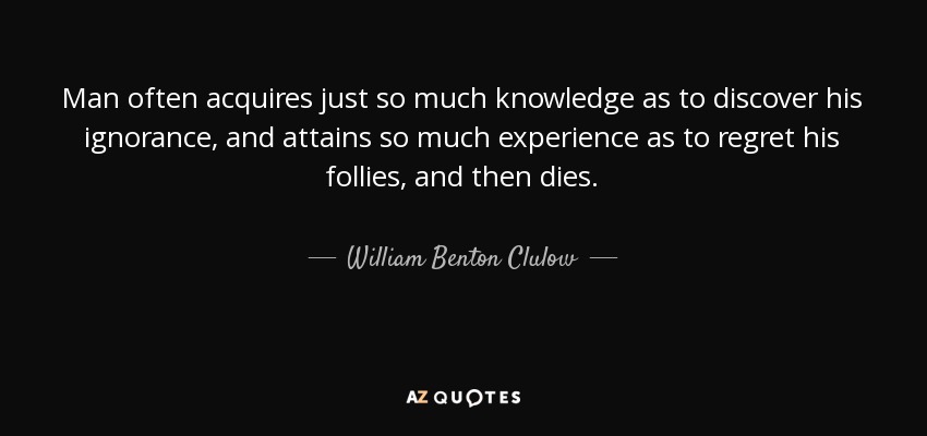 Man often acquires just so much knowledge as to discover his ignorance, and attains so much experience as to regret his follies, and then dies.