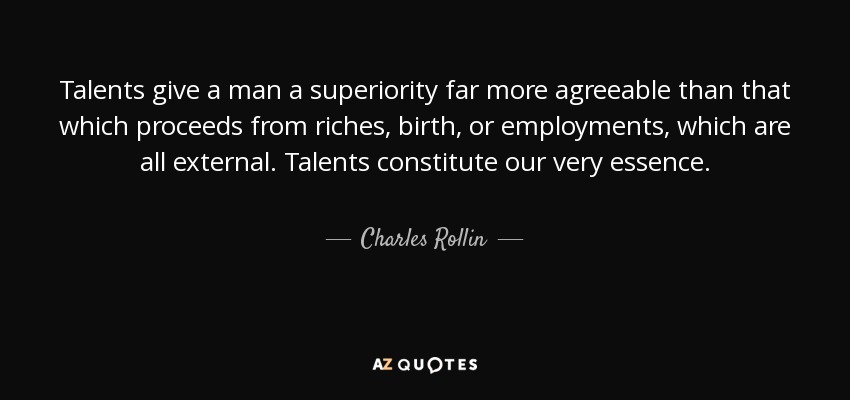 Talents give a man a superiority far more agreeable than that which proceeds from riches, birth, or employments, which are all external. Talents constitute our very essence.
