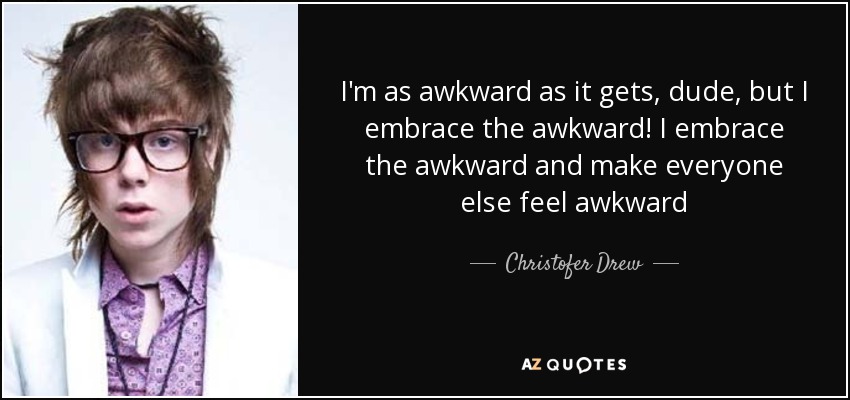 I'm as awkward as it gets, dude, but I embrace the awkward! I embrace the awkward and make everyone else feel awkward