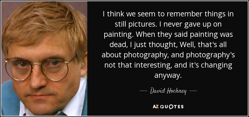 "I think probably something big can be done with cameras, I'm not saying, er, I'm saying chemical photography's finished, that means you can't have a Cartier Bresson again, you need never believe pictures."